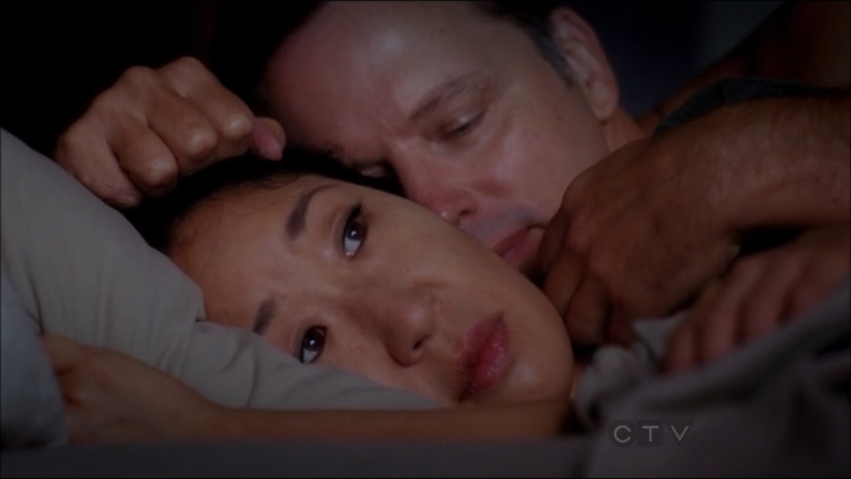 The Mer-Christina-centric episode followed the two doctors as they dealt with family, work and their relationships. The episode kicks off with Meredith failing to toilet train daughter Zola and Christina in a bad mood despite being in bed with "sex buddy" Dr. Parker (Steven Culp).